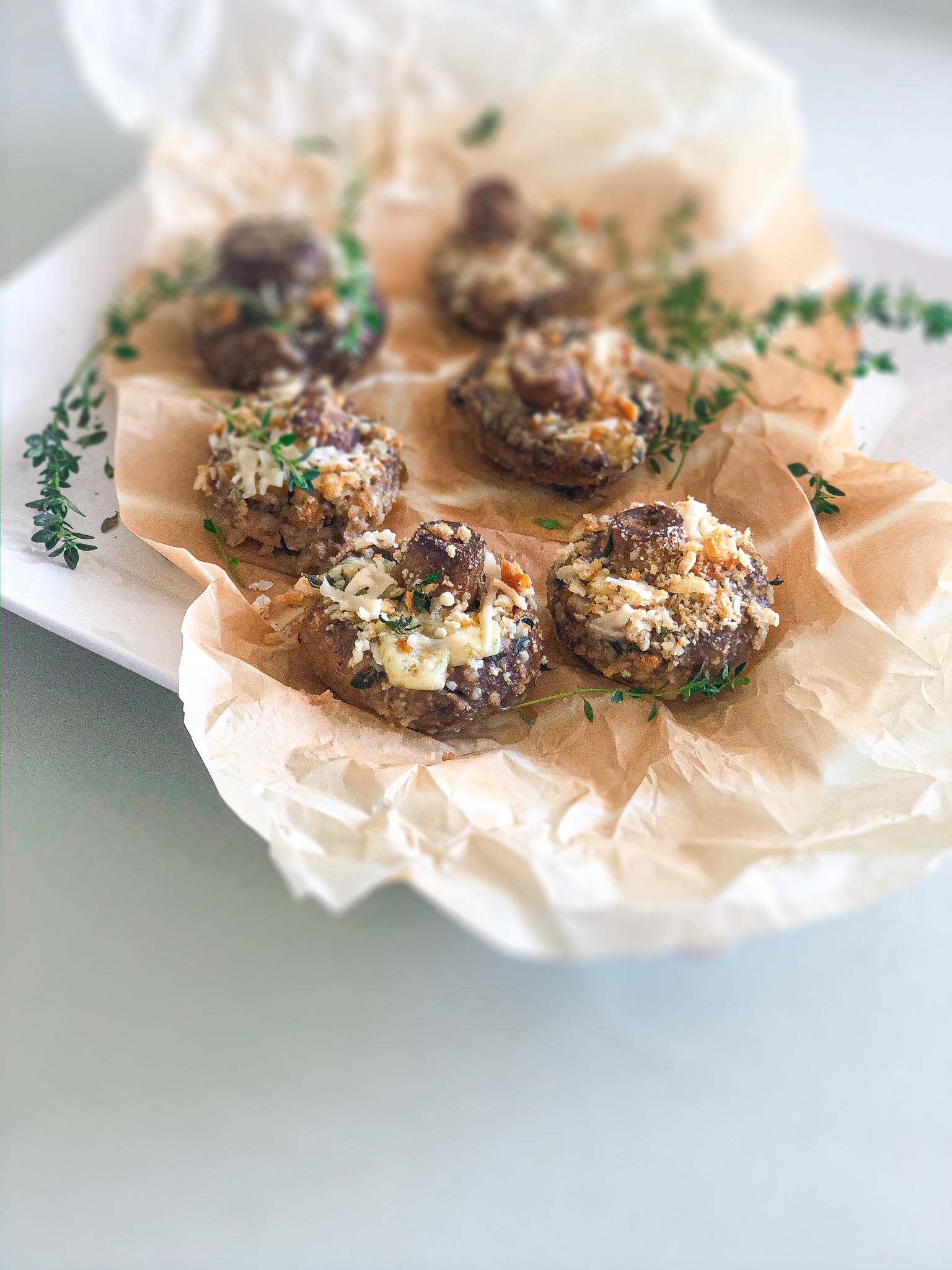 Jogue um pouquinho do queijo parmesão que restar em cima de cada cogumelo.