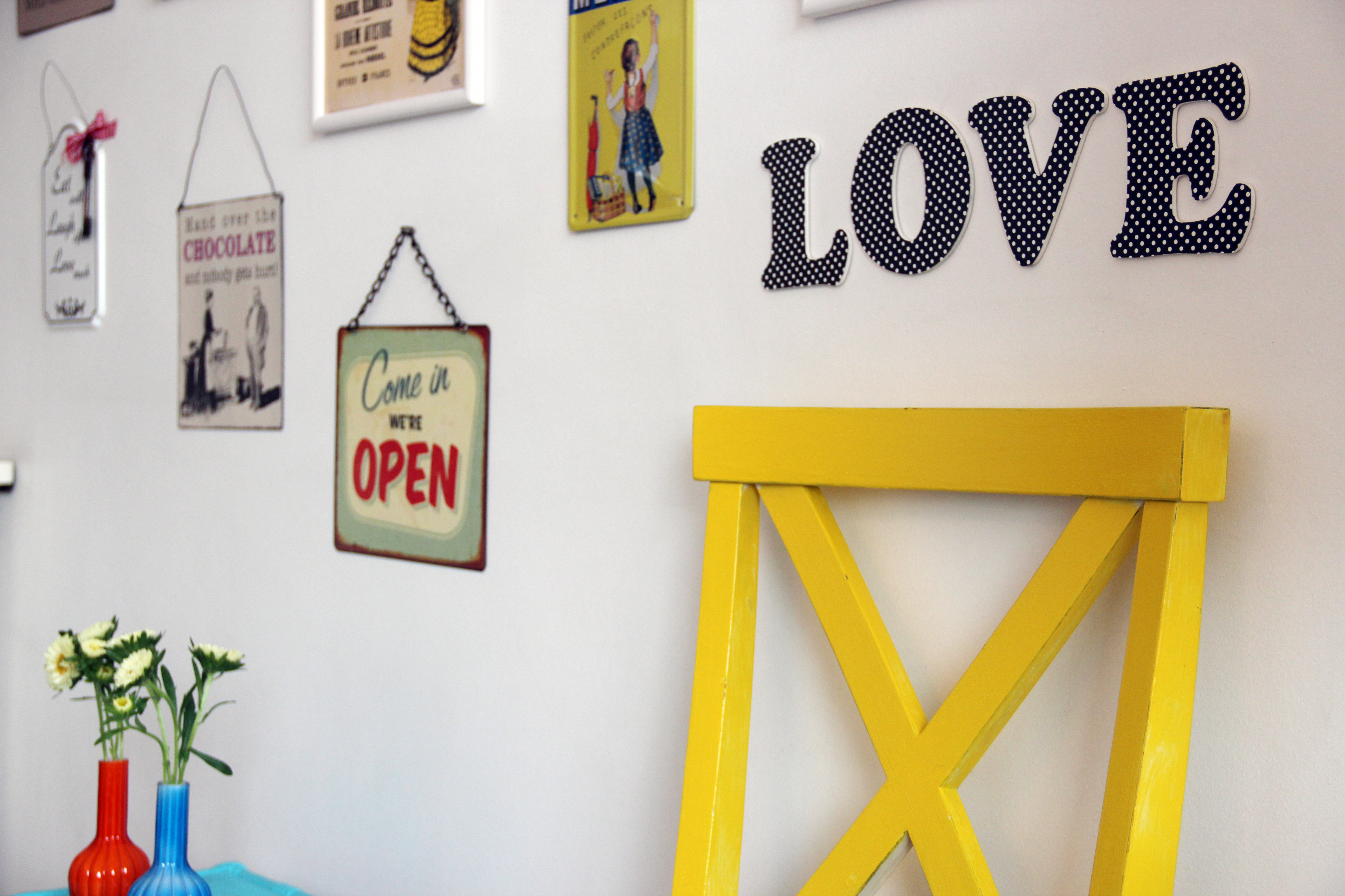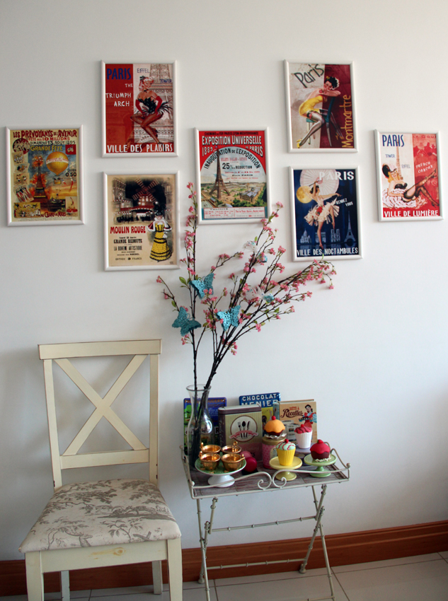 Eu já tinha contado aqui a minha mudancinha de cor de mesa e da cadeira. Porque quando eu enjôo de algo, corro para as resoluções baratas e simples, como tinta! E para quem andou me acompanhando aqui no blog, fiquei um mês viajando, e comprei umas coisinhas na minha viagem, inclusive fiz um post Comprar em Paris. Bem, estes quadrinhos eu tinha comprado em outra viagem a Paris, de uma feirinha de rua. Estas plaquinhas, comprei todas em uma loja de Londres, que eu surto geral lá dentro, é a loja mais fofa do mundo, que se chama Sass & Belle. Foi até engraçado, porque a vendedora perguntou se eu tinha uma loja e se eu ia revender no Brasil! Eu disse não, eu vou colocar tudo lá em casa mesmo! Ela deve ter imaginado que eu moro em uma mansão de 500 m2, coitada!