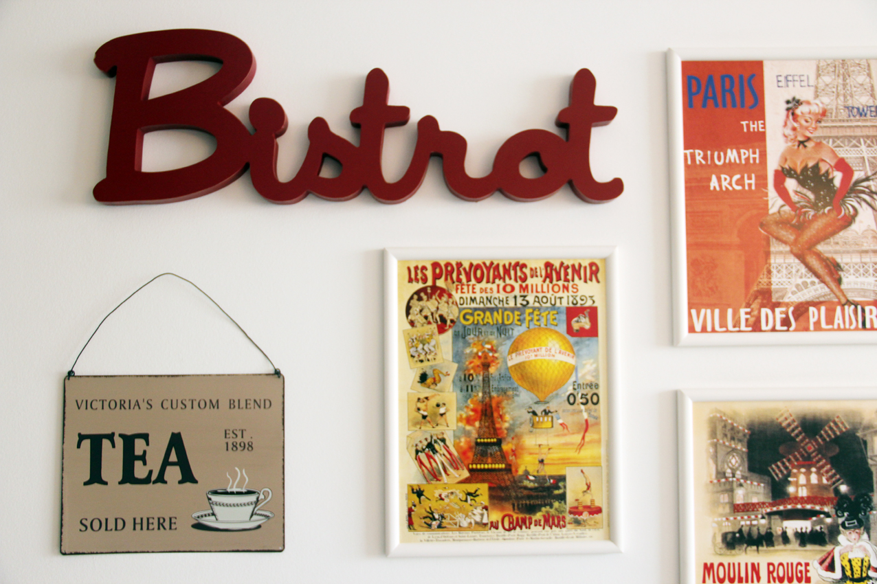 E essa plaquinha escrita BISTROT, achei que ia combinar tanto com a casa, que é toda vintage! Comprei em uma lojinha em Paris, chamada Maisons Du Monde, que tem as coisas mais lindas do universo.